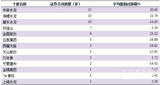 表3:最獲券商青睞的水泥個股排名